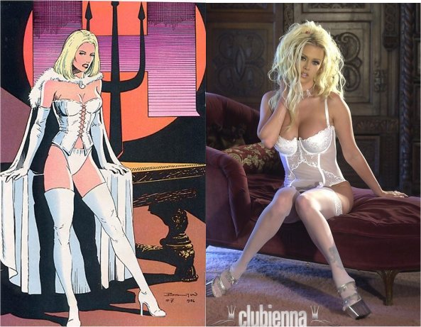 Confession time. I have never seen “X-Men: First Class.” Missed it in theaters and Redbox. It ain’t on Netflix. Thus, I am out of the loop. As a result, everything in this entry is from my own comic-book research and memory. So shaddup if it doesn’t jibe with what you know. Moving on…The White Queen first showed up in the pages of the Uncanny X-Men in 1980 as part of the evil Hellfire Club. Back then she was (like EVERYBODY ELSE, APPARENTLY) a psychic. When they started rebooting all the story lines a few years back, a lot of characters developed “secondary mutations.” For example, the Beast actually started looking like a large, blue cat. Because of course he did. Anyway, one of the additional mutations given to The White Queen (now simply Emma Frost because she’s totally good now, you see) was the ability to harden her skin into diamonds or somesuch. Oh, she also sometimes bangs Cyclops. Dude has a thing for psychic women. Weird. Finally, Emma looks a lot like Jenna Jameson.