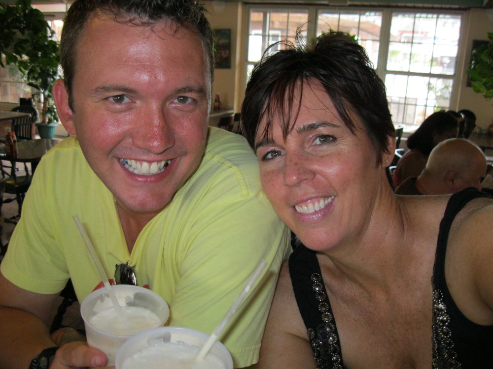 So thanks, dude. And thanks to you. Seriously. I want to kiss you. (Some of you more deeply than others.) As a reward, here’s my wife and me on our ten-year anniversary cruise. We had walked all over the goddam Bahamas and were tired, hungry, thirsty, and sweaty. Perfect.