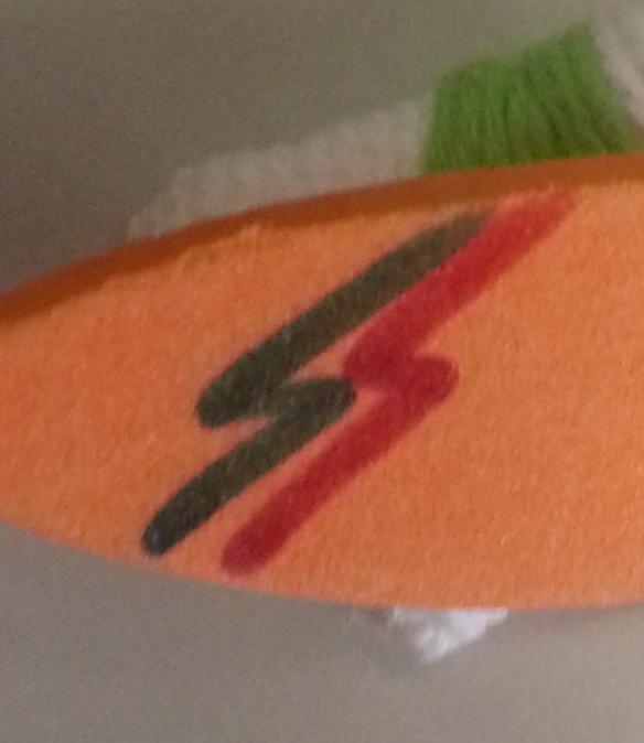 Sure, it’s probably supposed to be a lightning bolt, like the legendary Lightning Bolt surfboards surfed by the likes of Gerry Lopez at places like Pipe. Probably. Or maybe this is supposed to be a promotional piece for “Surf Nazis Must Die.” Either way, I’ll betcha green money that some little Indonesian kid fucked this shit all up.